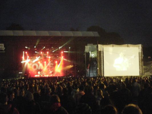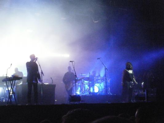 Pendant ce temps, Foals baisse le tempo avec la jolie Miami, puis le réaccélère avec After Glow et sa guitare très Radiohead, pas mal : le groupe a trouvé le juste équilibre entre un son "live" nécessairement plus costaud, et le maintien de la subtilité de ses compositions dans le dosage du son. Puis vient un titre très Bloc Party (Alabaster ?) où l'on décide, tiraillé par la faim, de partir chasser la galette-saucisse (pour finalement revenir avec un riz frit thaïlandais). C'est donc de loin qu'on suit la montée progressive et très esthétique de Spanish Sahara, une de leurs plus belles compositions à la fin assez intense, et sans doute le climax du concert. Ces garçons sont très bons musiciens et on sent qu'ils ont travaillé leurs nouveaux titres avec passion.