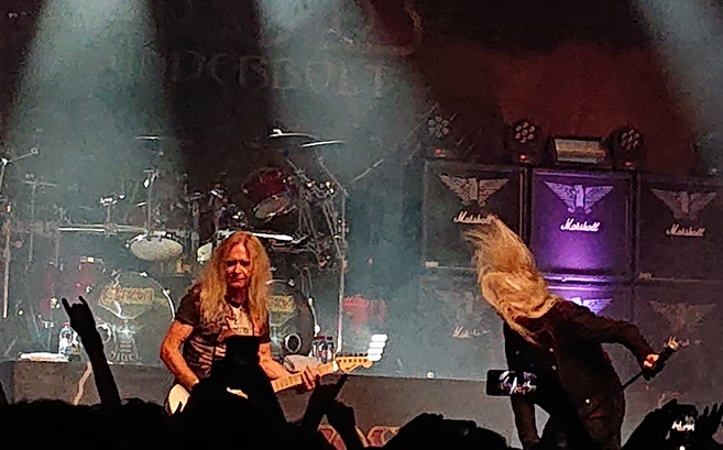 Impossible de se lasser d'un "747", d'un "Denim and Leather", d'un "Dallas 1PM" ou d'un "Power and the glory", tous ces standards qui font chanter le public et te font banguer un grand sourire aux lèvres. Avec en plus un Byff à la voix intacte, une vraie force de la nature, qui peut s'appuyer sur ses zicos qui le soutiennent depuis un bail maintenant, Paul "force tranquille" Quinn et Tim "je secoue toujours mes cheveux en tous sens comme si j'avais encore vingt ans" Carter !
