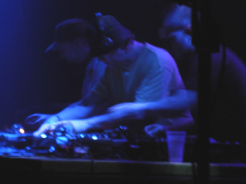 Le Cabaret se remplit juste avant l'arrivée des trois Dj's aux trois platines. Alors là pour le coup, les disques fusent et se fondent les uns dans les autres, des gros bons tubes assez connus (des Beasties à Roots Manuva..), sur lesquels la dextérité des musiciens ne fait plus aucun doute. Le son s'enchaîne à merveille, tout y est scratché à souhait : cassures des rythmes, accélérations hystériques ou encore ralentis surprenants.