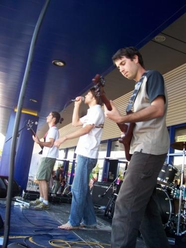 Du coup je suis allé voir les reports précédents de leurs concerts, et comme personne n'en parle, je me dis que Damien était dans un mauvais jour. Il a des circonstances atténuantes : pas facile de se concentrer devant une affluence aussi maigre et les clients du magasin qui ne font que passer. Il fallait être motivé pour s'arrêter : rester sur le parking en plein soleil (la scène occupant la partie ombragée) ou regarder les groupes de profil.