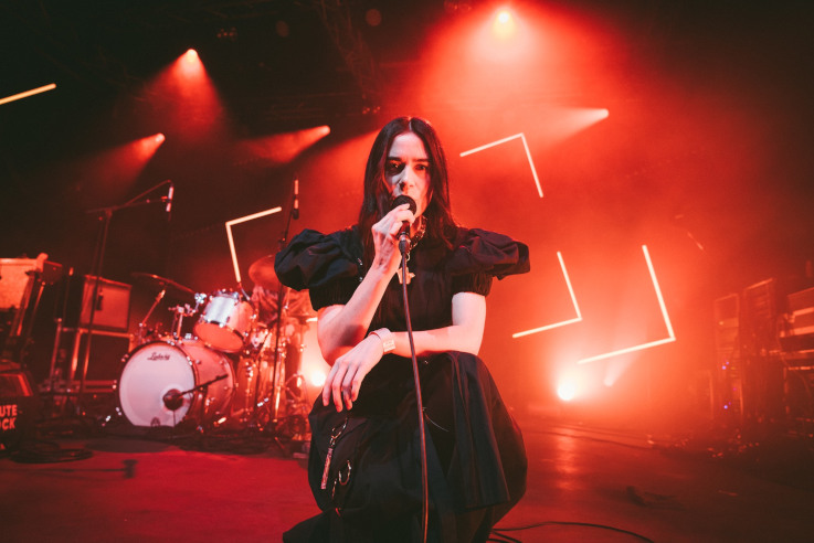 Inconnue au bataillon avant ce soir (elle publiera son premier album "Time Bend and Break The Power" le 10 juin 2022), l'Irlandaise Sinead O'Brien séduit en deux temps trois mouvements grâce à une présence très forte et assurée, à une voix grave délivrant un spoken word très percutant (on pense - encore - à la manière de chanter de la grande Kim Gordon) et à des morceaux d'indie rock gothique qui font mouche. L'attitude effrontée, et cette manière de faire du rock sans chercher forcément à faire joli ou féminin, évoquent, eux, une autre grande artiste, Polly Jean Harvey.