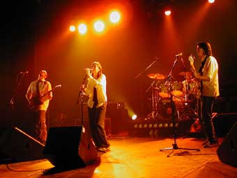 La batterie était assez basique, la basse normale et les moulinets du chanteur sur sa guitare complètement disproportionnés par rapport au son qui en sortait ... En plus à la fin la façon qu'il a eu de remercier "ses musiciens" a renforcé l'image un peu mégalo qu'il a pu donner à certains (dont moi). Sinon on en peut pas nier qu'il a une voix qui lui permet d'imiter très bien tout à la fois Tom Yorke (Radiohead), Jeff Buckley et Muse ... Un bon potentiel, mais dommage qu'ils n'aient pas des morceaux plus variés et originaux comme pouvait en avoir un groupe comme u-mass il y a quelques années ...