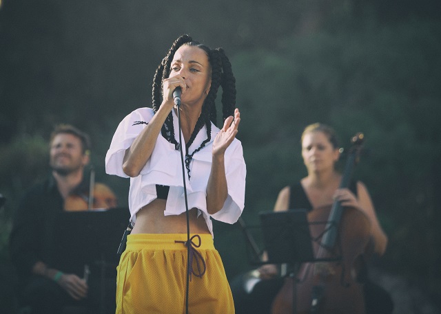 Avant 20h30, La Chica, accompagnée de son fidèle comparse Raphaël Charpentier, a pris possession de la scène selon son rituel.: en jetant quelques gouttes de rhum au sol qui dessinent un cercle sacré où elle dansera et convoquera ses morts. Loin de l'intimité d'une salle de concert, le set de jour et en plein air est devenu très dansant. La Chica occupait toute la scène avec aisance et magnétisme: radieuse, elle montrait beaucoup de naturel et de vitalité. Amusant détail poétique: au moment où elle interprétait The Sea, une nuée de goélands a envahi le ciel et tournoyé au-dessus du théâtre, leurs ventres nous offrant les reflets dorés du soleil couchant. Le public s'est rapproché, a dansé. Le titre La Loba a été retravaillé pour la scène et était vraiment très beau. Ce fut un pur plaisir de revoir la Chica en set électro, quel charisme solaire! Elle revient en solo piano-voix le 3 décembre à L'Espace Julien.