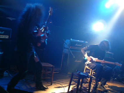 Assis sur deux chaises avec leurs guitares en main et penchés sur leurs instruments, le duo commence son impro pianissimo avant de se lancer dans des passages multo fortissimo. Quand le Japonais à la tignasse inextricable, Makoto Kawabata, se lève de son siège pour mieux martyriser sa guitare, on a l'impression d'assister à un duo entre Slash de Guns n' Roses et Joey Ramone (The Ramones) dont Jean-François Pauvros est le sosie presque parfait...