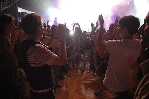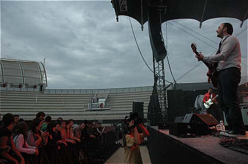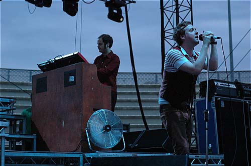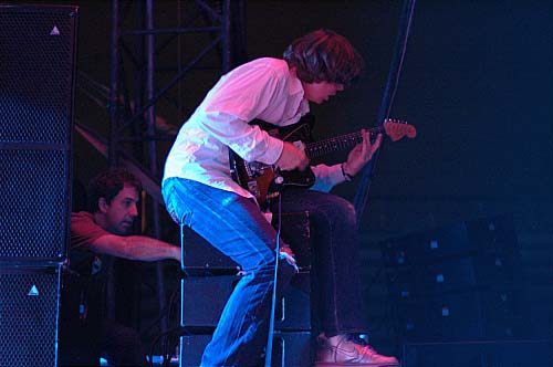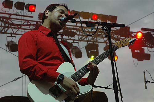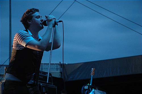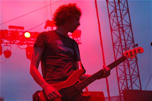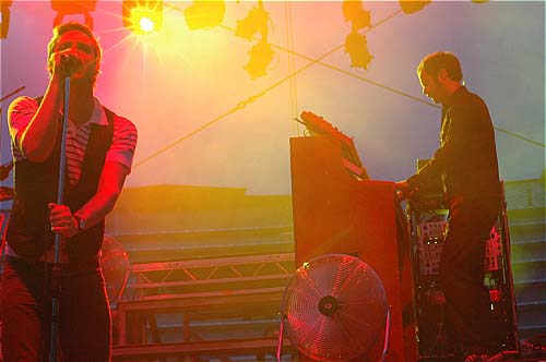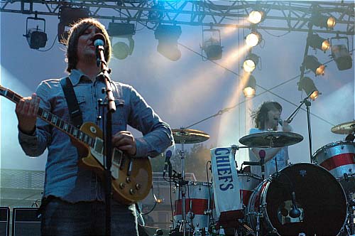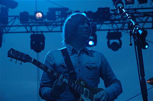 21h15. Les Kaisers Chiefs montent sur scène. A vrai dire, je ne connais pas leur album (et pour tout dire, c'est pas pour eux que je suis venu... mais les apéros peuvent être agréables...). Ils sont 5 sur scène et rameutent un peu plus de monde devant. Leur musique, c'est comme une bouteille de coca. Au début, ça fait pchiiiit, c'est sautillant, plein d'énergie, léger, on sent que les parents des gars ont fait tourner les Beatles sur la platine familiale plutôt que les Clash. C'est de la pop vitaminée par un zest de rock, et puis ils sont plutôt marrants... un petit quart d'heure...