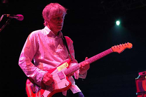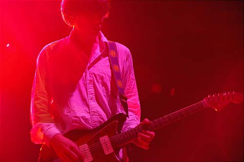 23h. Les lumières s'éteignent. La moitié des gradins est descendue dans la fosse pendant que les roadies installaient les guitares. J'en compte une bonne vingtaine en tout... Dans une clameur jamais atteinte jusque-là (pas trop difficile non plus), le géant Thurston Moore, Kim Gordon, Lee Ranaldo , Steve Shelley et un 5e membre non identifié montent sur scène. Sonic Youth en concert pour 1 000 privilégiés.