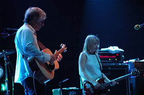 Thurston Moore a toujours l'air d'un étudiant avec ses cheveux en bataille, son jean troué et sa chemise blanche, Kim Gordon en robe droite blanche courte et escarpins noires semblent être une gentille petite fille tranquille. Lee Ranaldo, qui aborde une belle chevelure plus sel que poivre se marre (pense-t-il au guitariste de Kaiser Chiefs ?).
