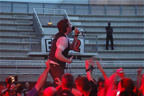 Arrive les Kaiser chiefs dont le public "jeune" et jeunette va t-on dire surtout se trémoussent mais quelle déception, une section rythmique molle sans artifice, sans envie, un guitariste transparent, certes un solo mais pas d'émotions, de folies, un style classique (et quelle coupe de cheveux, merci le manager)!!