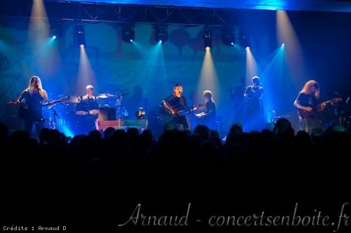 Tonnerre, éclairs ... Le show peut commencer, ainsi que le gros son. Ambiance méga Rock ce soir. La flûte de Théo Travis déchire l'espace. Nick Beggs nous fait profiter de son plus beau profil et Steven Wilson agite sa tête qui n'est déjà plus que cheveux ... Il s'assoit, se lève, joue debout puis se rassoit. Les claviers se répondent. C'est hyper puissant et pourtant plein de nuances. Sa main droite semble commander aux éléments et le public est totalement conquis.