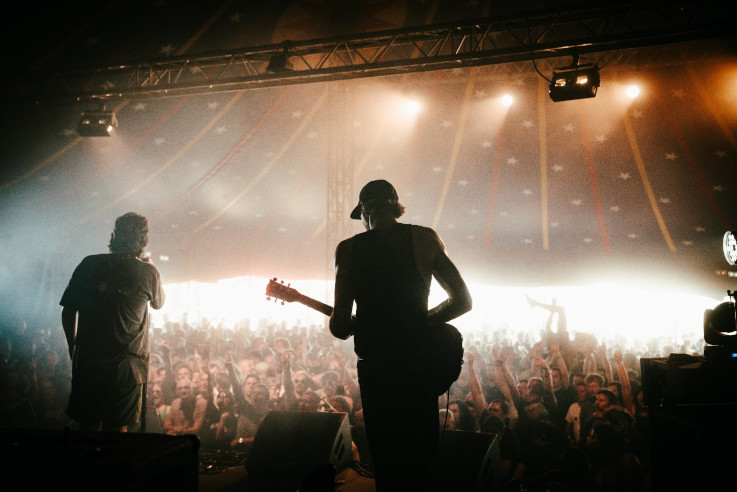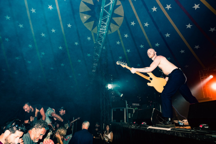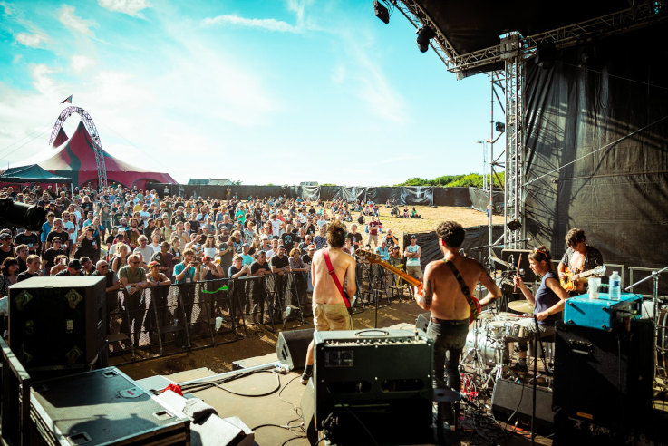 Il est 22h40, les personnes présentes sur le site sont désormais à température idéale pour encaisser le choc post punk made in Great Britain du groupe Beige Banquet, qui se produit sous un chapiteau rapidement en état d'ébullition. Il faut dire que ces mecs ne sont pas là pour faire de la figuration, ils ont pour projet de bombarder la foule de hits post punk truffés de chant hystérique, de riff anguleux, de lignes de basse énormes et de... cloche ("cowbell" in english). C'est du très lourd, du super violent, du brutal comme on aime.