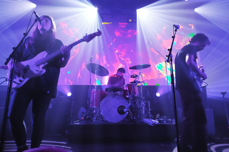 Bryan's Magic Tears pouvait, ce soir, bénéficier de conditions optimales. On se souvient d'avoir vu le groupe quelques mois auparavant sur la petite scène de l'Hydrophone à Lorient, et sa prestation nous avait déjà convaincu. Mais, là, dans un environnement plus large, avec des projections vidéos de matières colorées en mouvement sur écran géant et un son plus riche et plus ample, le combo parisien révèle pleinement toute la richesse de sa musique. Les compositions jouées ce soir proviennent des deux derniers albums, l'excellent "4 AM" (2018) et le chef d'uvre absolu, "Vacuum Sealed" (2021) dont on se demande encore par quels prodiges les chansons qui le composent ont pu être créées. Au moment de sa sortie, c'est bien simple, on n'en croyait pas nos oreilles : les chansons, toutes merveilleuses, s'enchaînaient miraculeusement pour former un ensemble d'une rare harmonie n'ayant pas cessé, depuis, de distiller ses charmes sur scène et sur album. "Greetings From Space Boys" prend son temps pour commencer mais cela ne fait que rendre plus jouissif le moment de sa pleine déflagration. On est d'emblée aspiré dans un environnement visuel et sonore qui nous met en mouvement corporellement et spirituellement, porté par ce qui est devenu de véritables tubes, tout à la fois émouvants, dansants et fascinants de complexité alors même qu'ils s'imposent dans toute leur immédiateté.