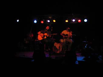 Vers 20h et quelques ils montent tous deux sur scene ... et je realise donc que ce soir nous auront le droit a un set "acoustique" ...c'est a dire a deux guitares (une elctrique, l'autre electro acoustique). Me souvenant que leur musique est tres calme je suis un peu inquiet ... et encore plus lorsque je vois Jo demander une chaise pour s'asseoir sur scene ...
