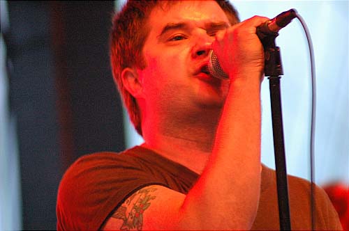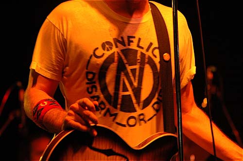 Cela dit les quelques unes ou j'ai réussi a suivre je me suis rendu compte qu'on était loin des thèmes classiques abordés par les chansons de tous ces groupes (anglais notamment) tous juste sortis de leur puberté. La conscience politique de Ted Leo se sent dans les thèmes abordés sur les quelques chansons qu'il présentera : "the shitty state of health care in this country", mais aussi sur les interventions qu'il fait comme lorsqu'il se fera l'écho de cette marche "number the dead" dont on lui a donne le flyer sur sa route vers la scène.