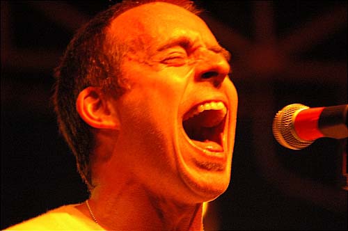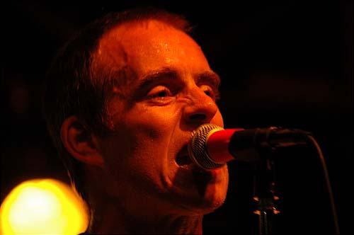 Au niveau chant c'est un mélange de ballade anglaises a la Posies (qui raconte des petites histoires) mais en ultra speed, de punk, de reggae, ... avec des passages ou il n'hésite pas a répéter le même bout de phrase (genre "it's all right") si longtemps qu'on se demande comment il fait pour ne pas se tromper, ou bien a revenir plusieurs fois vers le micro juste pour hurler dedans. Quand il est loin du micro c'est pour sauter avec sa guitare en s'enroulant dans on câble de guitare.