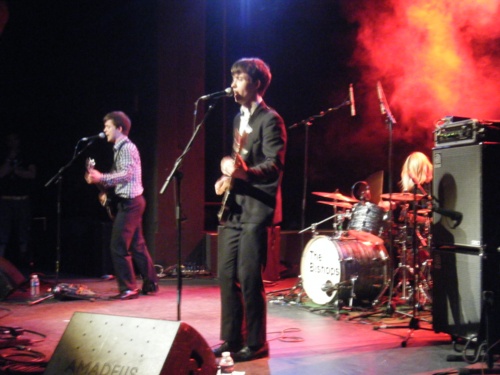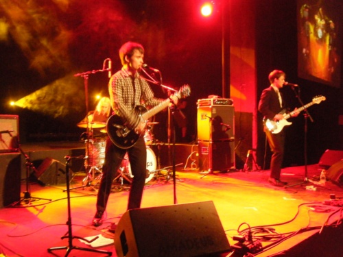 Mais voici la petite balade sur la fille qui est partie et même que ça fait drolement mal, avec une voix Morrissey-like : Nothing I can do or say, qui nous émeut sincèrement sur disque, fonctionne bien sur scène même sans le piano - avec leurs petits airs de peuchère, les deux frérots sont éminemment attachants. Mais il ne nous quitteront pas pour autant sans un dernier enchaînement salace : la plaisante Laughter in the Dark et surtout, la littéralement tuante Menace About Town, démultipliée sur scène par ces trois garnements qui décidément, s'éclatent toujours autant à jouer leurs titres en tout points parfaits et indémodables - puisque résolument démodés à la base... J'ai tellement aimé le concert que j'en oublie complètement de regarder combien de temps il a duré, ou de leur reprocher l'absence de rappel : quand on a eu la qualité et la quantité, pas besoin d'en rajouter.