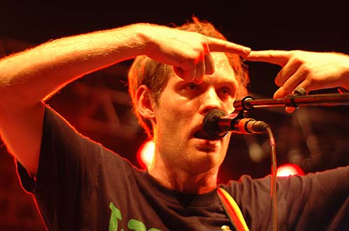 Il commence avec deux morceaux d'ailleurs de cet acabit et tout de suite, dans la salle, ça commence à danser. Comme son français est "shit" comme il le dit, il parle très lentement entre les chansons pour bien nous faire comprendre.