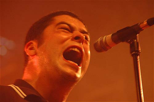 Bon, donc, 30 minutes plus tard, la sirène retentit, attirant à nouveau la foule sous la tente. Les DEAD 60's entrent sur scène et le moins que l'on puisse dire, c'est que ça déménage. Les petits gars de Liverpool, avec leurs gueules de prolo tout droit sortis d'un film de Ken Loach envoient leur rock dub à toute berzingue.