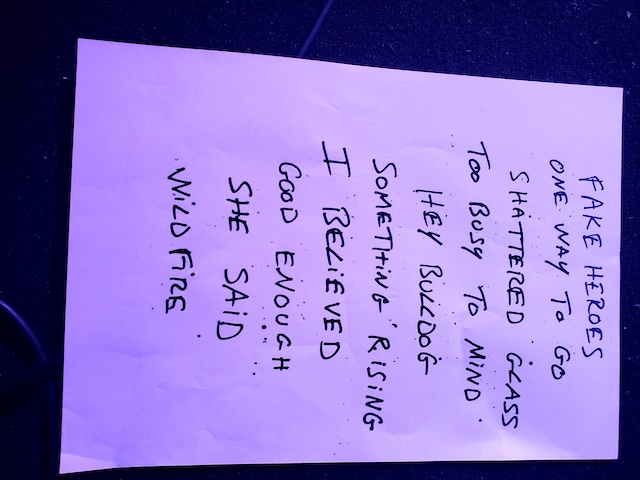 Pour ce concert au LAM-leur 4ème si je ne m'abuse-nous avons droit à une set lit condensée de 10 morceaux dont une cover des Beatles Hey Bulldog parfaitement exécutée. Dès le premier titre fake heroes, le son pop rock du groupe est top niveau, les guitares accrocheuses découpent l'espace sonore avec des riffs tonifiants, des solos mélodiques et concis le tout soutenu par une section rythmique des plus énergique.