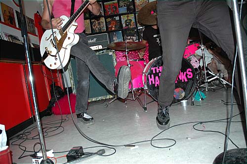 Bon ils se sont mis à jouer et en fait c'était horrible, le son de la guitare était saturé et ça faisait super mal aux oreilles. De toutes façons ils avaient l'air aussi drogués que Pete Doherty dans Voici, et ça faisait un raffut pas croyable. Le chanteur franchement il hurlait plus qu'il chantait !