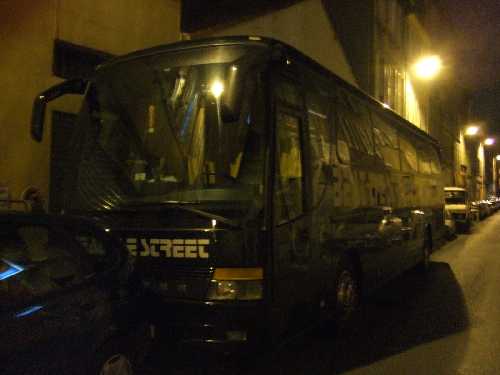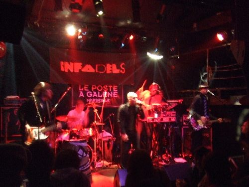 On le voyait depuis le haut de la rue, mais oui : le groupe de ce soir a bien garé un putain de bus, un vrai, un énorme bazar noir, devant le Poste à Galène, et ça a du être du sport ! Quand les Infadels commencent pépères vers 22 h et sans avant-groupe, on se dit qu'on a bien fait d'arriver tranquillement en retard.