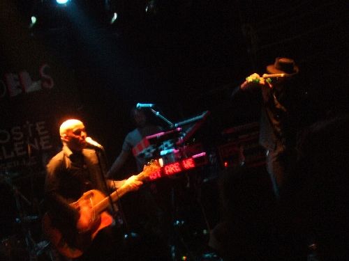 Hélas les branquignols qui l'accompagnent arrivent à chaque fois trop vite et on retombe dans le brouhaha musical et la vacuité la plus sidérale, aussi sec. N'en déplaise à la critique et à notre propre annonce sur LiveinMarseille, même ces pauvres Happy mondays n'ont pas mérité d'être comparés au présent combo et encore moins, non d'un staracadémicien empalé, les fabuleux Gang of Four !!