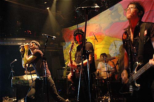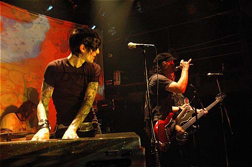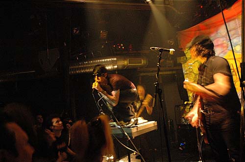 Une autre qui hurle "pussy, pussy" à tout bout de champ, qui crache de la bière sur le lead guitarist qui s'énerve et lui file un léger coup de pied dans l'épaule. De la bière gicle de partout, un peu d'eau aussi, Jake tend son clavier, le bouge dans tout les sens, l'offre à quelques mains qui tapent dessus en plein délire.