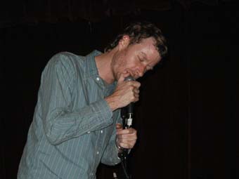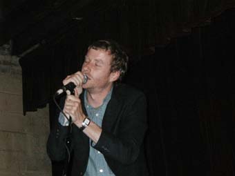 Apres avoir un petit peu galere pour trouver la dite salle, j'ai la surprise de tomber sur un lieu assez quelconque de l'extérieur avec comme enseigne une simple photocopie A4 ... je ne sais as pourquoi mais vu le genre de musique et les gens qui s'y produisent régulièrement je m'attendais a un lieu plus branché ... mais tant mieux. Au guichet une fille aimable comme une porte de prison qui lève a peine le nez de son journal pour nous tamponner le poignet. C'est curieux j'aurais pensé que dans ce genre de lieu un peu confidentiels et genre "associatif" que tout le monde y était passionné. En tout cas ce n'est pas elle qui me donnera envie de revenir ici. On laisse sur notre gauche un escalier qui descend (c'est la qu'on lieu les soirées SubTonic) pour rentrer dans une salle relativement petite. Bar immédiatement sur la droite avec table de mixage juste au dessus. Quelques tables et tabourets hauts le long des murs, rideau rouge en fond de scène et chose plus surprenante 4 rangées de sièges au pied de celle-ci. Le concert est annoncé a 20h, nous sommes arrivés vers 20h20 et nous sommes 5 dans la salle dont Matt Berninger le chanteur de The National au bar ...