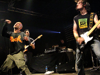 Tokyo Sex Destruction : groupe de garage rock espagnol dont les membres ont semble-t-il mis les doigts dans des prises de courant (alternatif) dès leur plus jeune âge... Leur album Red soul communitee le prouve de manière irréfutable : ils aiment l'électricité et ça les rend complètement fous. Habillés en noir avec des pantalons et chemises bien taillés, les Tokyo Sex Destruction prennent un malin plaisir à froisser leurs tenues de scène en gesticulant de manière frénétique pendant toute la durée de leur set. Ces jeunes gens veulent qu'on parle d'eux et qu'on les regarde, ils n'arrêtent donc pas de vociférer des slogans - comme l'intelligent "Free Michael Jackson" - en prenant de multiples poses sensées faire fantasmer les femmes. Heureusement, ils n'oublient pas de reprendre magistralement les Sonics et leur mémorable Have love will travel puis de rendre hommage à la soul music en interprétant brièvement a capella quelques tubes soul. Oh yeah !