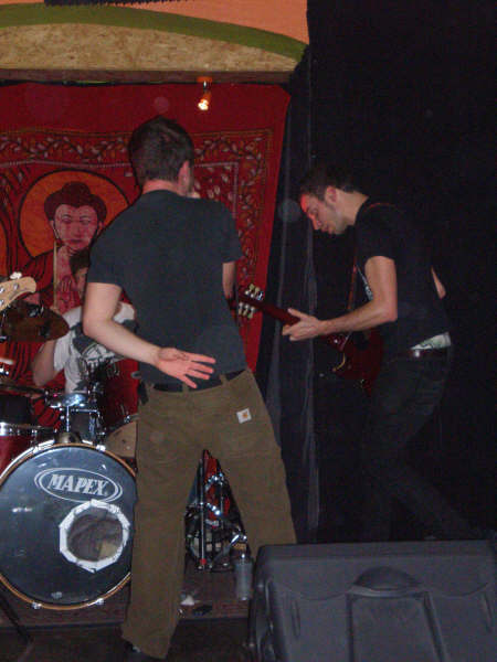 Et voilà, ça c'était pour le plus caricatural d'entre eux, le guitariste n'était pas mal non plus à sautiller et se démembrer dans tous les sens et à jouer en l'air. Leur musique, de la destruction sonore avec parfois des éclaircies plus mélodieuses, n'a pas tant effrayé que ça le public qui en a redemandé à la plus grande surprise du groupe a priori habitué à des remerciements moins chaleureux "get out with your noise". Donc très heureux de rester pour une fois, le rappel a été de la même veine, un brin punky, avec de la bière jaillissant de la gorge éraillée du chanteur. Fin de la nuisance sonore.