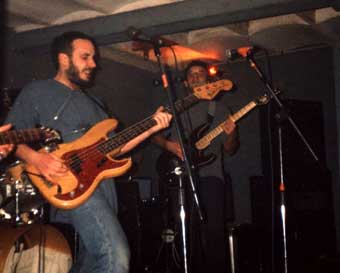 Bon j'étais assez impatient de voir Troika vu la pub qu'vait fait Hum! (qui avait su me prendre par les sentiments en m'disant que ça ressemblait à Noir des'). So, combo deux grattes, basse, batterie et chant en français. Et la pêche en plus ! Des morceaux énergiques, des zicos énervés zet bondissant. C'est vrai que ça fait du bien d'écouter aut'chose que du punk (rock, hardcore, 77, etc..) ou du métal (plein de famille aussi..) et faut avouer que c'est pas le style le plus répandu à Marseille, les groupes ayant la tendance à se retrouver dans les famille sus-citées. Revenons à Troika. J'avoue avoir accroché, la hargne et l'énergie étant communicative (même si la salle était plutôt calme). Groupe engagé, nombreux titres à connotation sociale, reprise de l'excelent Hexagone de Renaud (tjs d'actualité). Un final sur une chanson en espagnol, plus planante, inspirée d'un poême de Neruda.
