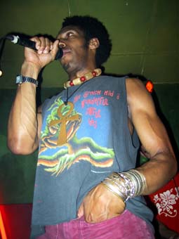 Du coup j'ai aussi penser à Meï Teï Sho que j'avais aussi découvert à l'Intermédiaire. En fait la comparaison s'arrête là. Beaucoup moins ragga, j'ai assez vite apprécié ses interventions (l'ampli du fond moins visiblement) qui apportait u peu de changement. Pourtant les parties instrumentales se suffisent à elles même. Le DJ (enfin celui aux platines) Nino Korta m'a paru assez excité.