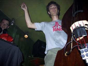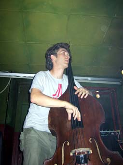 D'ailleurs sur scène (et dans le public bien sûr) tout le monde dansait. Je ne pensais rester que quelques morceaux et finalement je me suis laissé entraîner jusqu'à la pause et ai même pris un petit morceau de rappel où plutôt que de rejoindre sa contrebasse, Kmille s'est mis lui aussi derrière les machines. Très bon aussi.