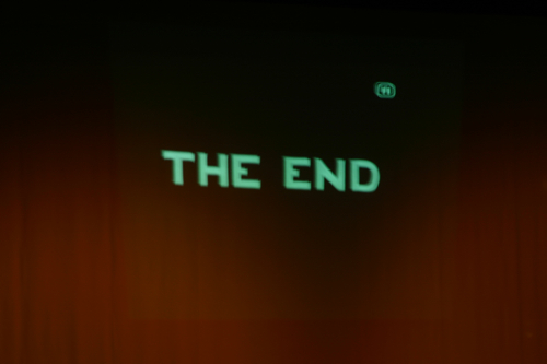 Lorsque les mots The end apparaissent et que la salle s'allume, on est surpris. Uli salue les spectateurs qui lancent : "Déjà ??"