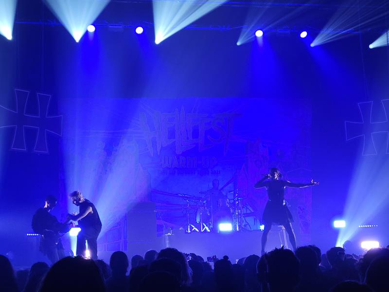 Un style à la mode depuis quelques années sur la jeune scène metal, mais un peu trop attrape-tout à notre goût. Le premier, Eiga en est assez représentatif : alternance voix claire et hurlée (mais pas toujours super nette et sans avoir un flow de ouf non plus), effets electro, puissance de la batterie et de la rythmique... Ca sonne assez bien par moments, mais les efforts mélodiques sont quand même un peu masqués par le reste : sur la longueur on est donc peu marqués par leurs chansons, dont on entend surtout les gimmicks. Puissant, mais un peu vain ? Comme dit, c'est pas notre style, mais une bonne partie du public a l'air d'apprécier, d'autant qu'ils ont amené des potes (Montpellier n'est pas loin).