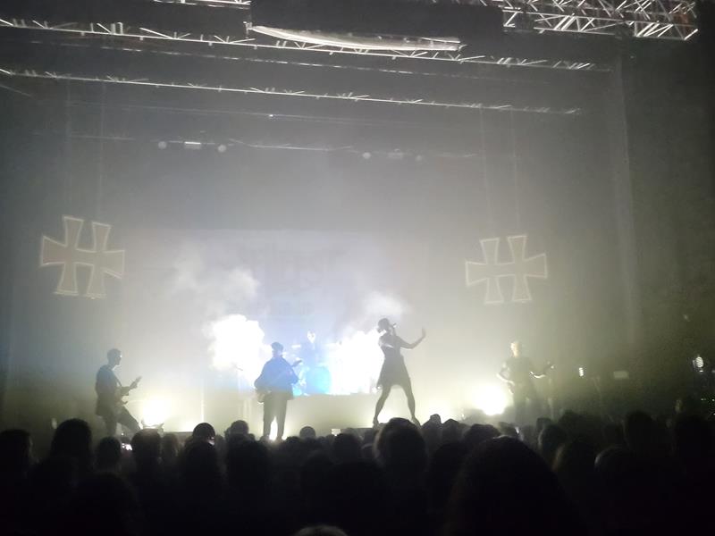 Ici aussi une rythmique assez puissante mais, alors qu'il y a 4 bonhommes sur scène avec elle (dont au moins un guitariste assez doué, qui fait de chouette soli), une partie des choeurs et des sons sort en playback, quel dommage ! A la réflexion on a aussi souvent du mal avec les voix pop posées sur un son metal - habituellement on ne s'attarde pas devant ces groupes-là en festival. Même constat que sur les précédents : bien fait, a toute sa place au Hellfest, mais pas notre came, belle ambiance toutefois : le soleil brille pour tout le monde ! Enfin, pas tous les jours à Clisson hein, mèfi ...
