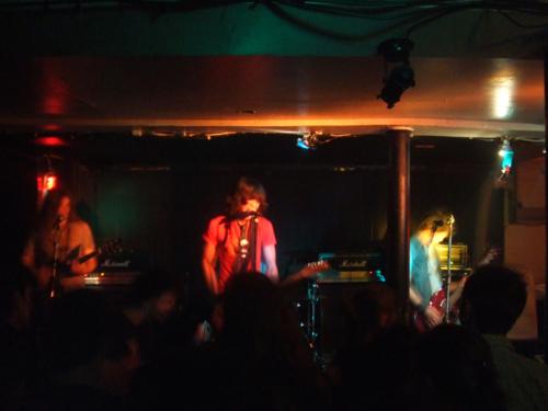 Et arbore une première Gibson SG (la marque semblant être un sponsor occulte de la soirée) dont le guitariste tire surtout des accords saignants et saturés. On parle donc chiffons et vinyles et j'ose même un timide coming out au bar - oui c'est moi le type qui n'arrête pas d'écrire que cette salle est infecte, bondée, bruyante, tropicale... et aussi que c'est le plus chouette endroit de Marseille. Le groupe annoncé "pop punk" n'a finalement de pop que son sonorisateur de ce soir, cette grande folle de Rudy, amateur bien connu de glam rock à paillettes et autres groupes de gonzesses, qui tient cependant bon les potards. Et qui arrive à force, à faire de ce mur de son brut, un truc plutôt écoutable !