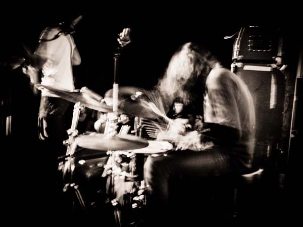 Les membres de Wooden Shjips ne sont pas vraiment du genre à haranguer le public entre les morceaux, des grésillements noise assurent la transition. Pas de jeu de scène exubérant non plus, les musiciens sont totalement concentrés sur leurs instruments et resteront impassibles du début à la fin.