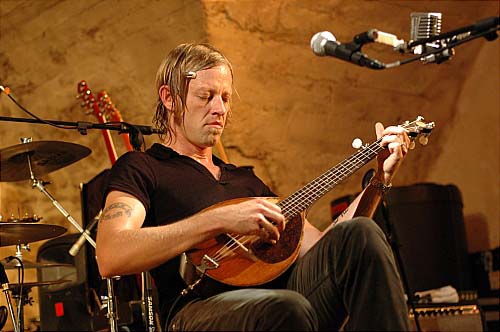 Sans perdre une seule seconde sa concentration, il empoigne sa mandoline électrique pour un morceau plus apaisé pendant que le second guitariste essaye de réparer l'arme rouge.