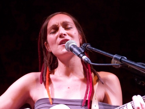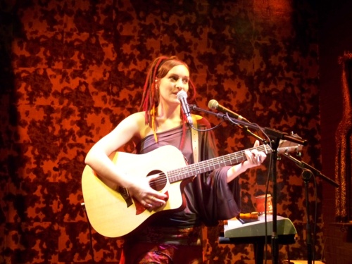 C'est la chanteuse Plume qui démarre la soirée. Cette jeune artiste nous présente un univers très personnel aux sonorités teintées de reggae/folk. Seule sur scène, elle s'accompagne au piano, à la guitare et utilise comme Anaïs et David Walters une pédale enregistreuse. On entend une inspiration puisée du côté de chez Camille dans les bruits de bouches et percussions corporelles. Ses textes évoquent l'enfance, les indiens, la nature, les acrobates ...