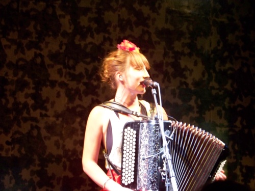 Elle décline l'amour sous toutes ses coutures et nous offre une reprise de Boby Lapointe et une gigantesque reprise d'Elvis Presley. Elle a parfois une voix qui nous fait penser à Patricia Kaas, chaude et sensuelle. Son unique compagnon de scène, son accordéon oscille entre rock, musette, valse et tango. Un très beau moment.