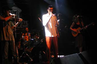 Je les avais raté à l'Intermédiaire, pas cette fois. Plutôt chanson dans l'ensemble, le chant est emmené par un chanteur qui me faisait un peu penser à Akhenaton (physiquement et comportementalement) et un chanteuse guitariste, accompagnés par un deuxième guitariste, un bassiste, un violoniste (qui sort de drôles de sons parfois) et une deuxième fille à la batterie !
