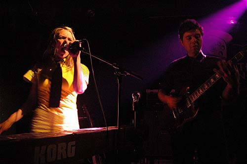 Le public des deux premiers rangs (je n'ai pas reculé davantage) est à fond ! Difficile de résister au duo orgue/guitare de Why cant' I relieve you, relayé par les choérgraphies cocasses de la chanteuses (qui n'a pas encore l'air d'une folle, ça ne va pas tarder), au rythme disco-noisy infernal de No disappointment où les deux voix crient à tour de rôle ou en même temps, juste avant que les guitaristes interviennent pour déclencher une véritable orgie sonique.