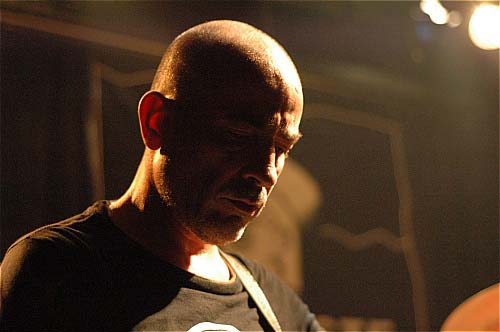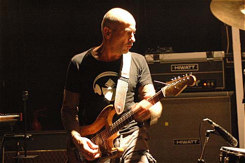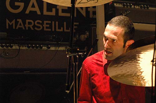 Ca joue donc très fort et violent, d'entrée c'est l'apocalype maintenant, sur un mode qui semble parfois un peu improvisé, mais extrêmement construit - les musiciens se regardent et s'écoutent, chacun bâtissant une nappe de son sur ce que font les autres. Serge tricote des miaulements dans les aigus, fracasse du riff dans les graves, en dansant pied nus "autour de sa guitare" (difficile à décrire autrement, c'est l'impression que j'ai ressenti), tel une version diabolique de l'angélique Nosfell, en moins souple et en beaucoup plus méchant...