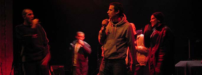 Plutôt branché rock et chanson, je découvrais il y a maintenant une dizaine d'années le rap avec le groupe IAM et son superbe (et drôle) album Ombre et Lumière (ce n'est que longtemps après que je réaliserai que c'était l'embryon de ce même groupe que j'avais regardé sans grande conviction en "première partie" de Jean Louis Aubert sur le Port pour l'inauguration du Virgin Mégastore quelques années avant - le 30 Mai 1990). Ils confirmaient ensuite avec L'école du micro d'argent tout le bien que je pensais d'eux (sur disque). Coté scène j'avais bien aimé l'énergie des Cypress Hill au Lolapalooza (1993), le premier passage de la FF a l'Espace Julien (a l'époque ou les gens allaient les voir en famille et non pas avec le sac a dos sur le ventre pour ne rien se faire piquer par derrière) mais honnêtement depuis cette époque plus rien ne m'avait séduit ... et puis l'année dernière je tombe coup sur coup sur Keny Arkana (et son mixCD L'esquisse) et sur HHP (et leur street Cd Ferme pas la Porte) qui me plaisent quasi instantanément par leur textes et leur atitude. Sans tomber dans une bataille "clichés contre anti-clichés" cette nouvelle scène hip-hop (a laquelle on peut ajouter La Swija) a un message surprenament positif, même lorsque les sujets abordés sont assez graves, et c'est déjà énorme. Ensuite on pourra leur reprocher d'être un peu trop classique sur la forme, mais ce serait injuste car c'est un reproche que l'on fait rarement à la Chanson. Le premier album de HHP (Aperçu) sort aujourd'hui dans les bacs, alors en attendant de trouver le temps de passer chez un disquaire, posons quelques questions a 6 des 11 membres de ce collectif très actif.