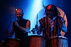 Ces huit musiciens mélangent percussions traditionnelles et sonorités modernes, influences contemporaines et courants archaïques. Rythmes sorciers, basse et didgeridoo vrombissants, chant envoûtant, en route pour un voyage initiatique sauvage et novateur. Des retours de scène : là. www.kaophonictribu.com/ & www.myspace.com/kaophonictribu