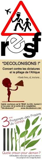Concert de soutien aux sans papiers et aux militants inculpés pour leur solidarité, avec le Réseau Education Sans Frontières. Avec CQFD No Stars : Une Chanson teintée de ska et de ragga qui tchatche de la galère, du droit à la paresse, de Noailles, etc.. Vibrion : Issu de la scène Slam marseillaise, Vibrion souffle un slam aux instrumentaux obsessionnels et hypnotiques en mêlant la guitare, la contrebasse, et le violoncelle aux samples électro. Hypnotiques sur scène comme sur disque. L’interview par Live In Marseille : ici. Leur site : http://www.vibrion.net/ et www.myspace.com/vibrion ; Poum Tchack : Swing tzigane. Ils ont su conserver toutes ces mélancolies typiques de l'âme manouche et tzigane, des airs des grands standards jazz, des notes de tango et des rythmes inspirés d'Orient. Pleins de retours de scène : là. Les disques sont écoutés : ici. Site : www.poumtchack.com/
