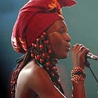 Sayon Bamba Camara : Qu'elle soit portée par une guitare espagnole ou une mandoline, une trompette en bois ou en sourdine, une guimbarde ou des flûtes, des percussions latines entremêlées au bolon, au gongoma et au doum africains, la voix de Sayon s'est affirmée forte et sensuelle, rugueuse et fragile. Elle nous raconte des histoires de femmes aspirant à la liberté des histoires de maquis en folie, de fêtes et de déceptions amoureuses. Une belle présence sur scène. sayonbambacamara.com/